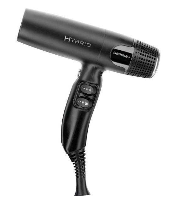 El Gamma+ Hybrid Spina Italia Nero Opaco es un secador de alto rendimiento que combina tecnología híbrida (motor AC + DC) con un diseño robusto, silencioso y equilibrado. Ideal para barberos que buscan potencia, durabilidad y estética profesional.